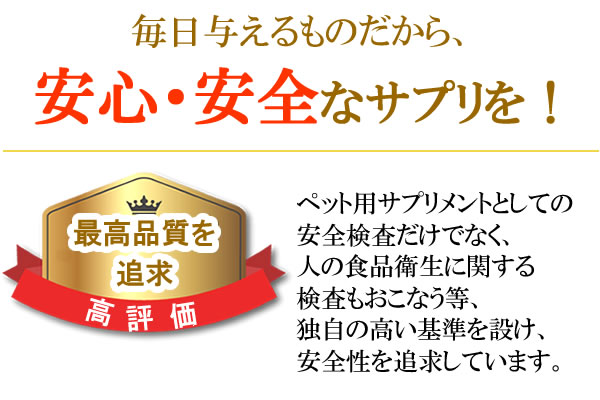 「安心して与えられる事が一番」独自の高い安全基準を設け検査を実施しています。